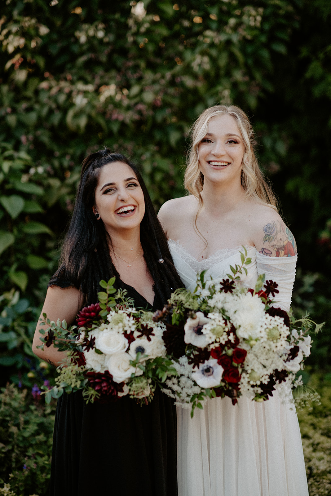 For their portraits, I leaned into intimate posing that felt natural to who they were — close, unhurried, focused on the small moments of connection rather than grand gestures. Willows Lodge’s gardens provided exactly the right backdrop: beautiful without being overwhelming, romantic without being fussy.