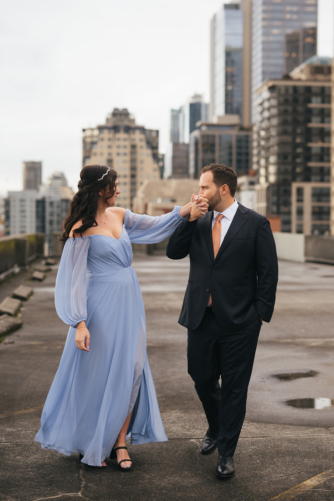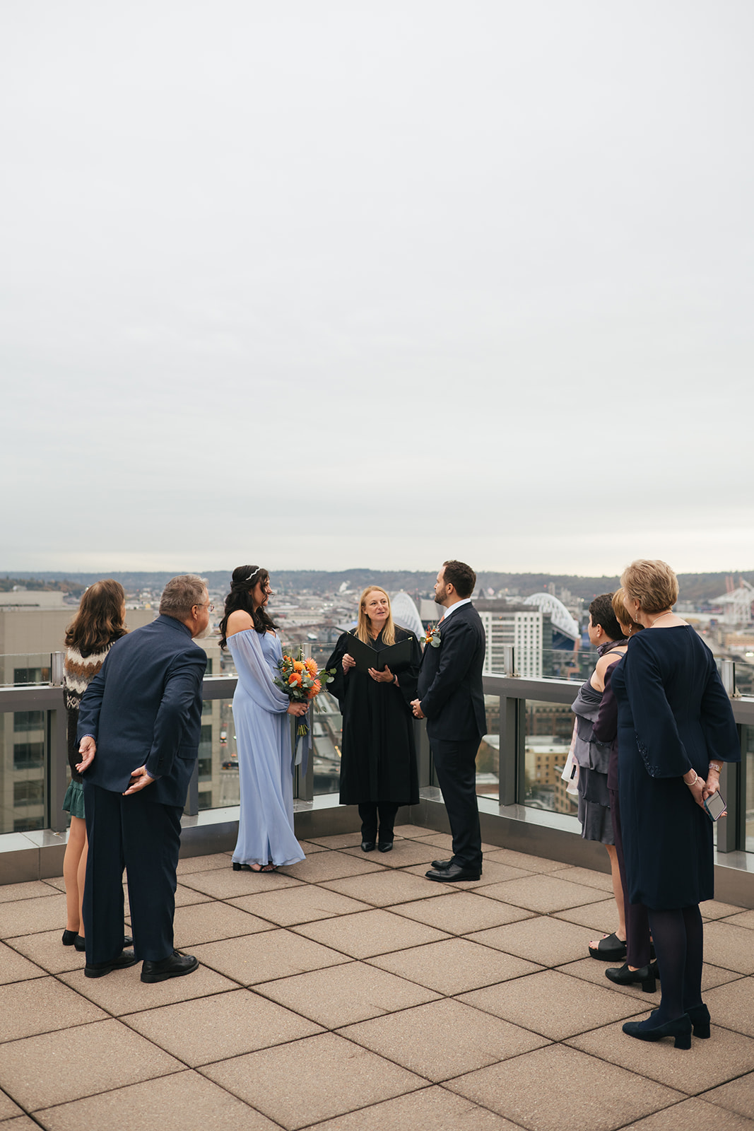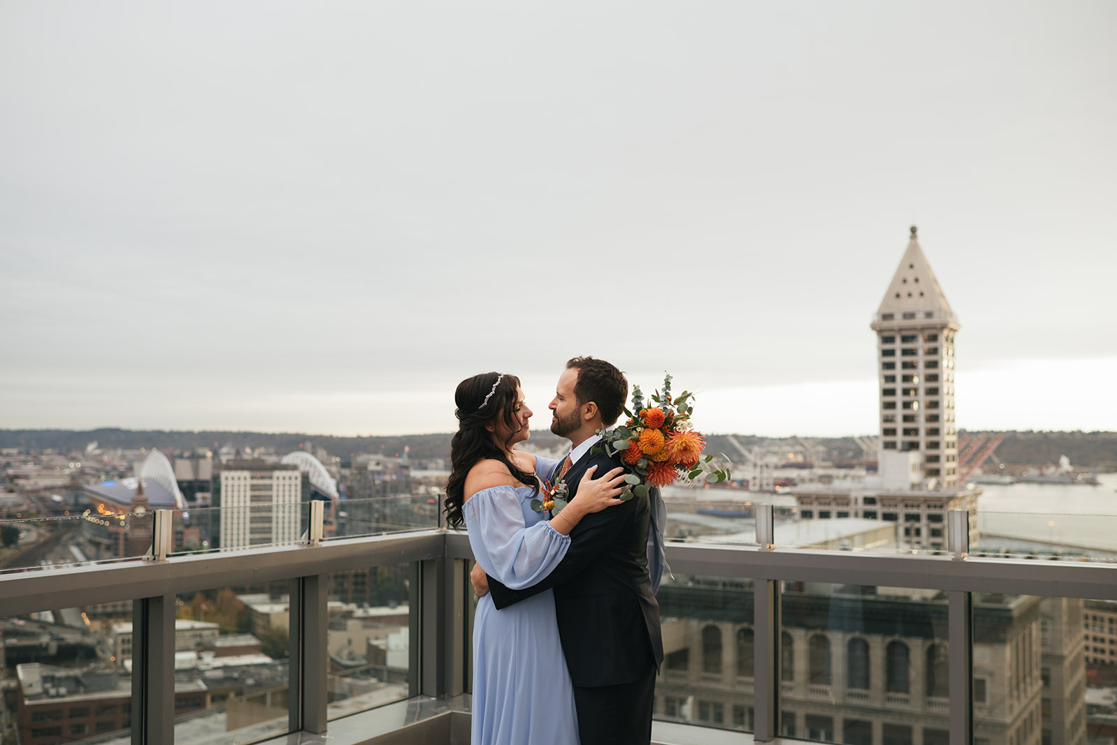 Before their ceremony, I took them to one of my absolute favorite rooftop views in downtown Seattle for portraits. It’s a spot that has always felt special to me — the kind of place that reminds you just how magical this city can be.