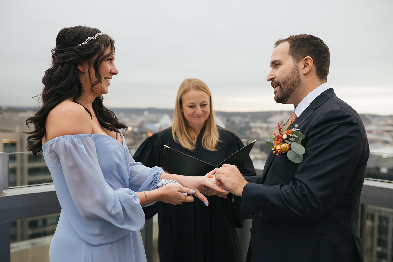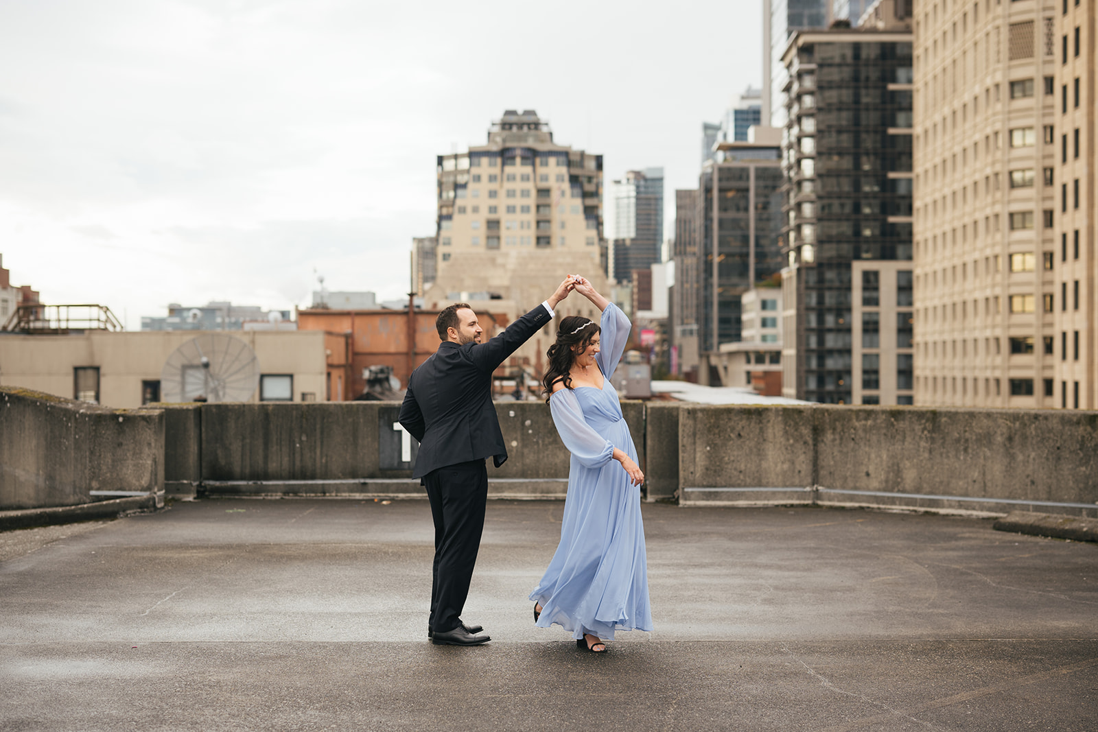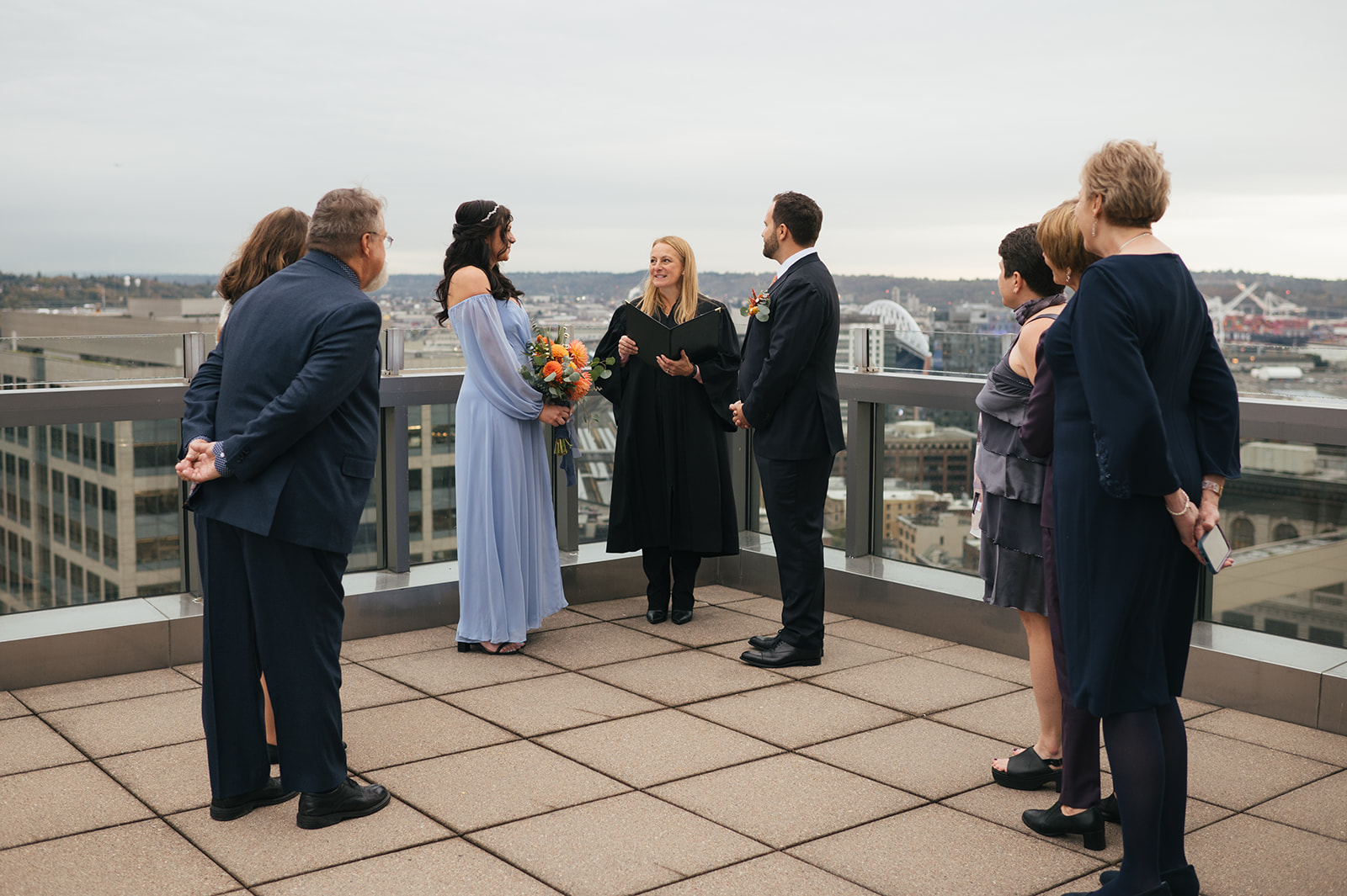 Before their ceremony, I took them to one of my absolute favorite rooftop views in downtown Seattle for portraits. It’s a spot that has always felt special to me — the kind of place that reminds you just how magical this city can be.
