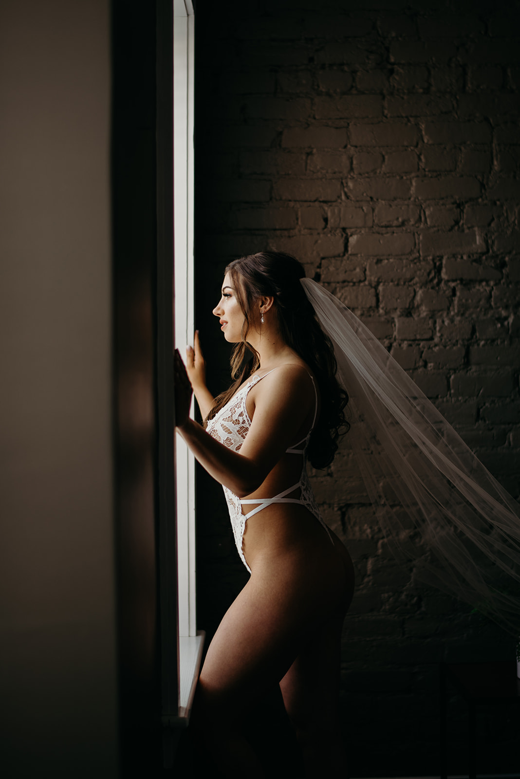 Last year, my bride Linsey and I chose an Airbnb downtown with windows that lined the wall for her boudoir portraits. Not only was there amazing lighting, but it had an exposed brick wall and wood flooring. This created a really nice clean slate for us to work with. In order to add a little life to the room, I brought along a few plants. I have started doing this more often and it really adds a nice natural element to some of the images.