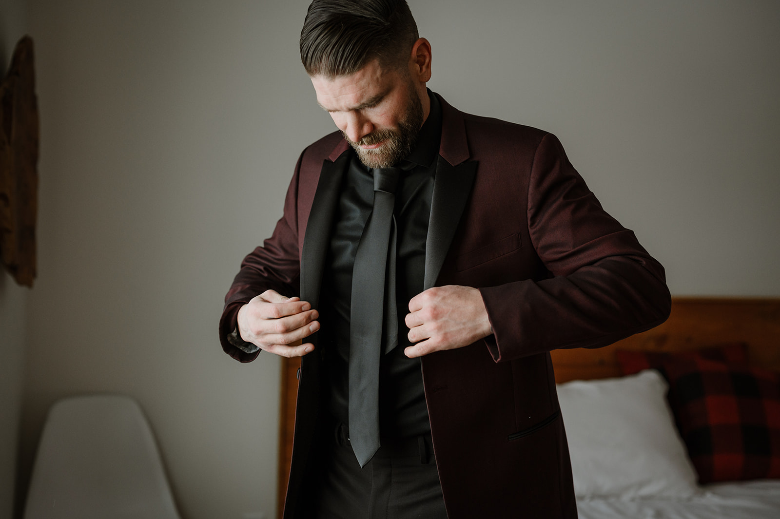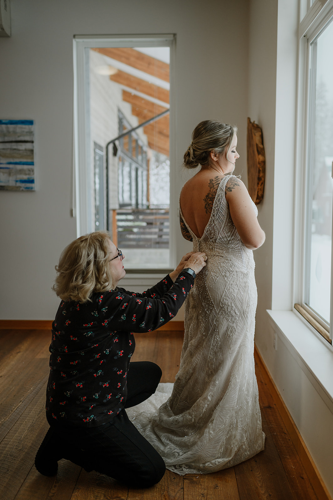 Na-Mu Lodge is an excellent venue for an intimate winter elopement. It’s secluded, offers great natural light, and has plenty of space for a small wedding. The venue also features a full-service kitchen, which this couple used to its full potential by hiring personal chefs. This added a delightful touch to the evening, creating a warm and inviting atmosphere.