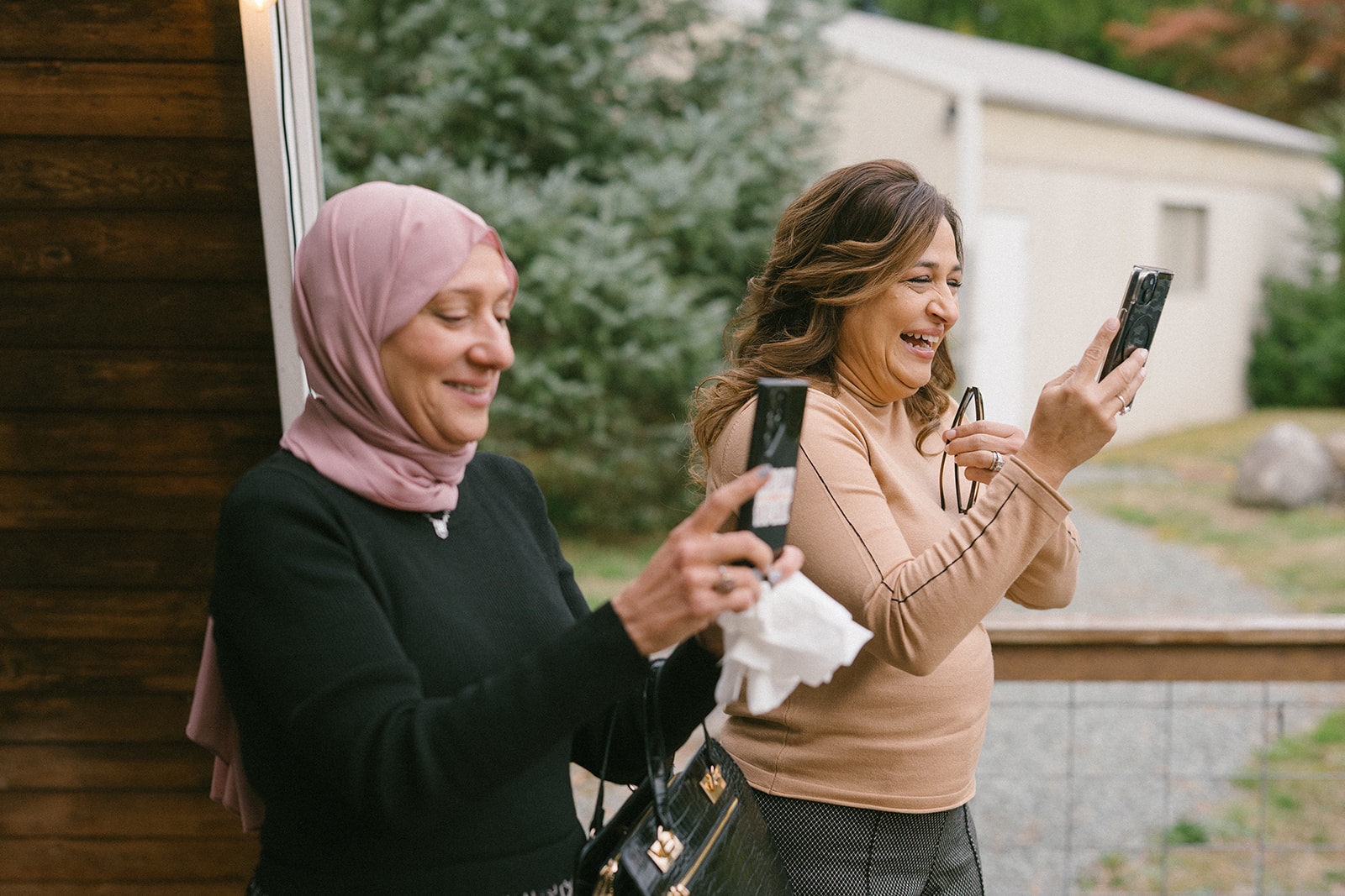 Family played a central role in the day. Abregail’s sister and mother were there, along with Hamid’s mother and brothers. They arrived early, quietly watching as the space came together and sharing in the anticipation. When Abregail stepped onto the deck and saw the floral arch set against the mountains, she immediately knew what was about to happen.