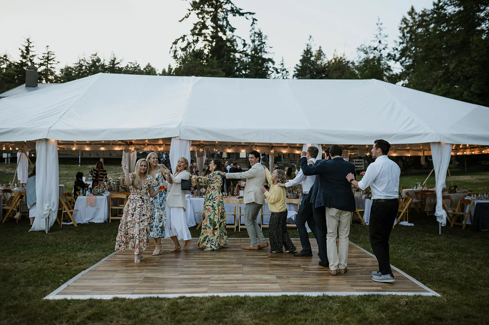 To close the evening, guests gathered once more as the dance floor filled for a celebratory train — a moment playful, unscripted, and overflowing with joy. This wedding at Pebble Cove Farm on Orcas Island was extraordinary in the way the best celebrations often are — not because of excess, but because of intention. From the stunning weather and thoughtfully curated design to the exceptional cuisine and heartfelt toasts, every element worked in harmony to create an experience that felt both elevated and deeply personal.
