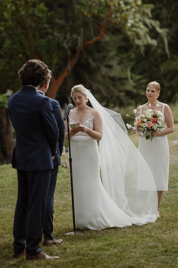 Petal Hill designed florals that felt perfectly at home within the coastal landscape — refined yet organic, romantic without excess. The arrangements complemented the surroundings beautifully, enhancing the atmosphere while allowing the natural setting of Orcas Island to remain a central character.
