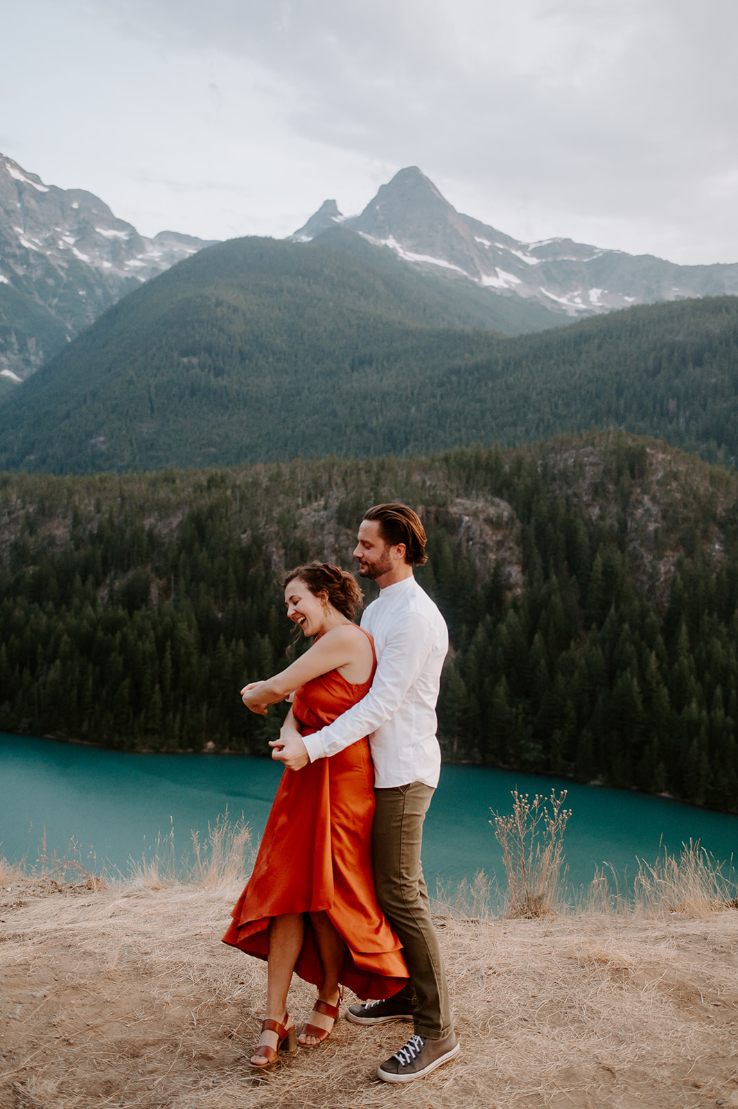 Rather than treating their engagement session at Diablo Lake as a simple portrait appointment, the couple shaped it into a full weekend experience, camping beside the lake so nature itself could guide the rhythm of our time together. There is an understated luxury in allowing yourselves this space — time to disconnect from the ordinary, breathe more deeply, and step fully into a place that invites presence. From the moment we arrived, the atmosphere carried that unmistakable sense of anticipation reserved for meaningful beginnings.