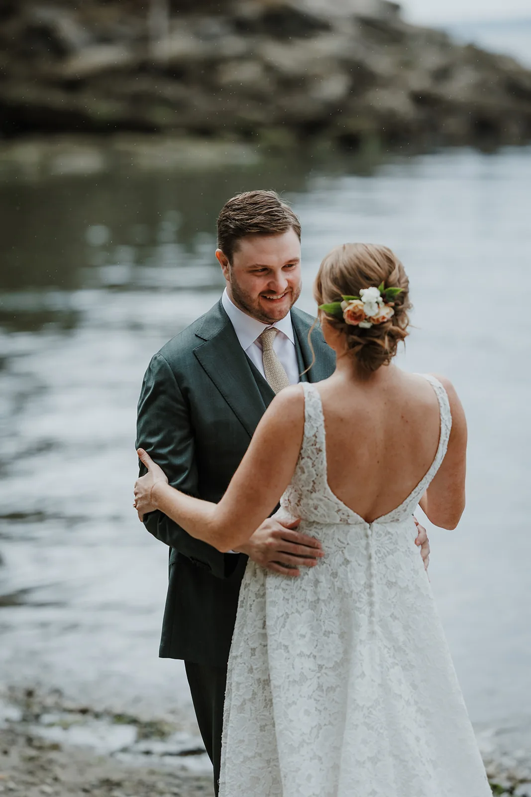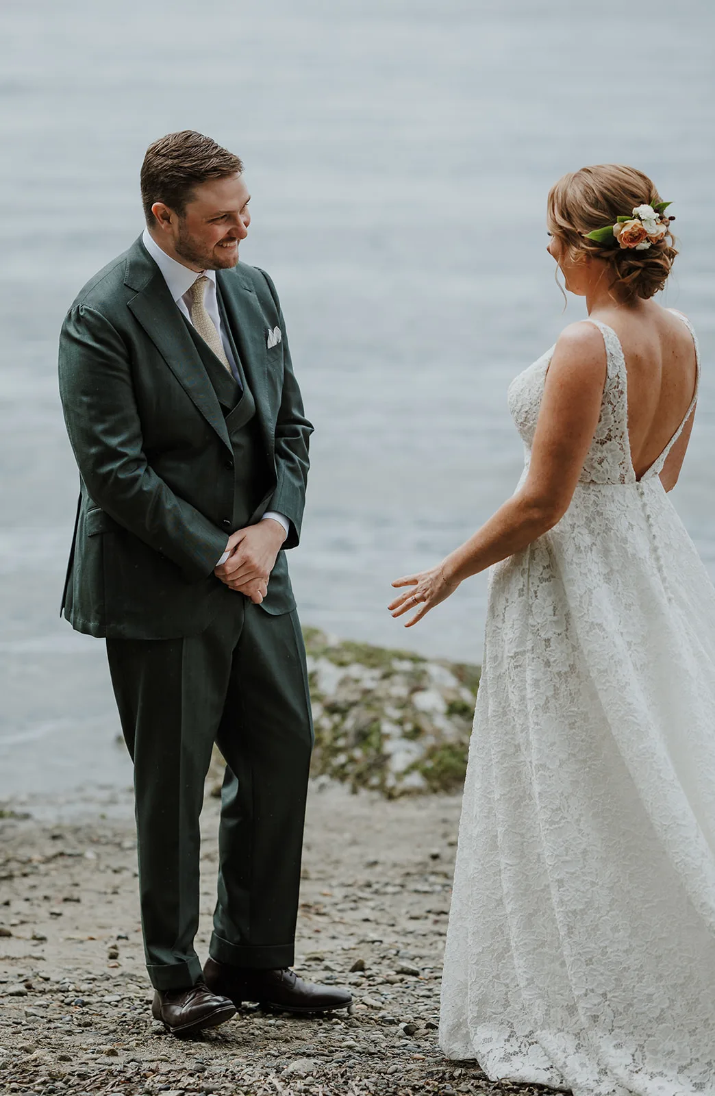 After those intimate moments at the estate, we traveled to a breathtaking nearby beach for portraits. The soft spring light, gentle breeze, and natural surroundings created a peaceful backdrop for the couple’s first look and early photographs together. It was one of those moments where time felt both expansive and quiet — perfect for memory-making.