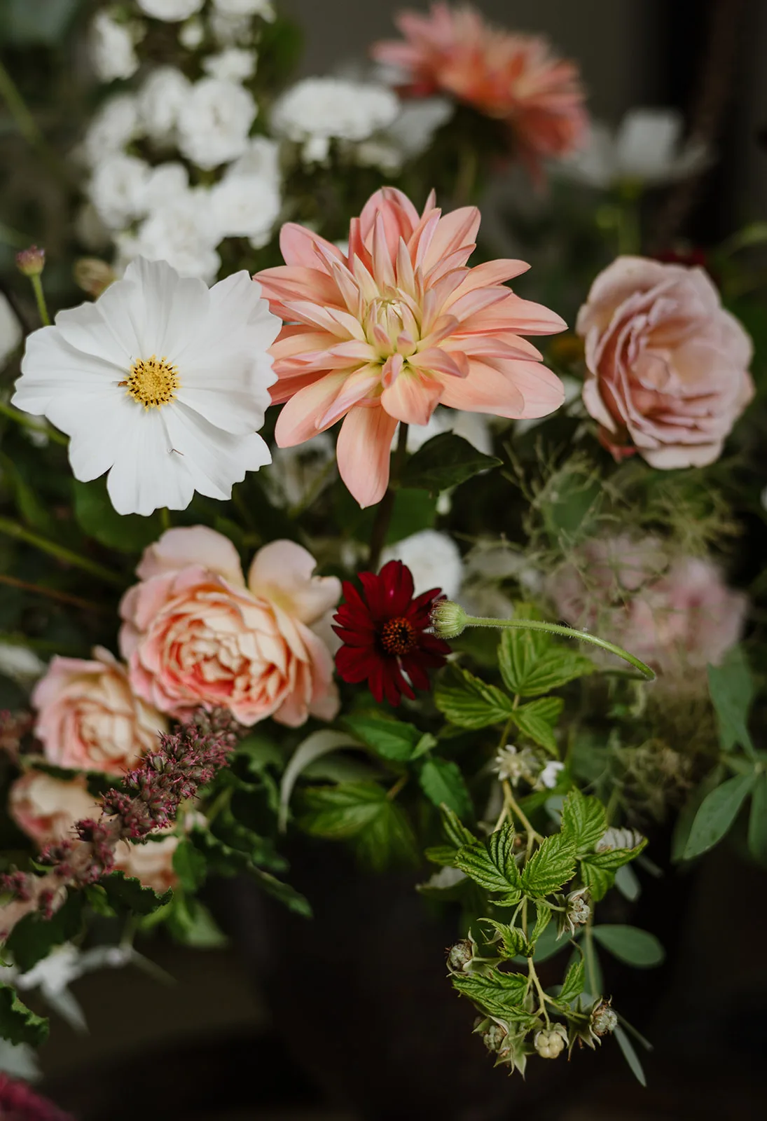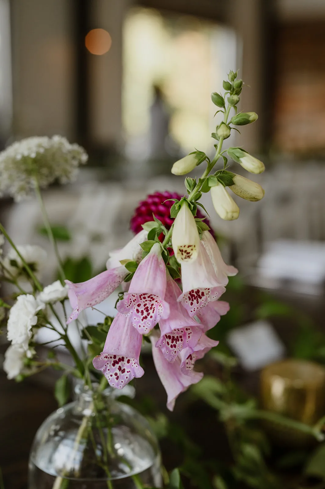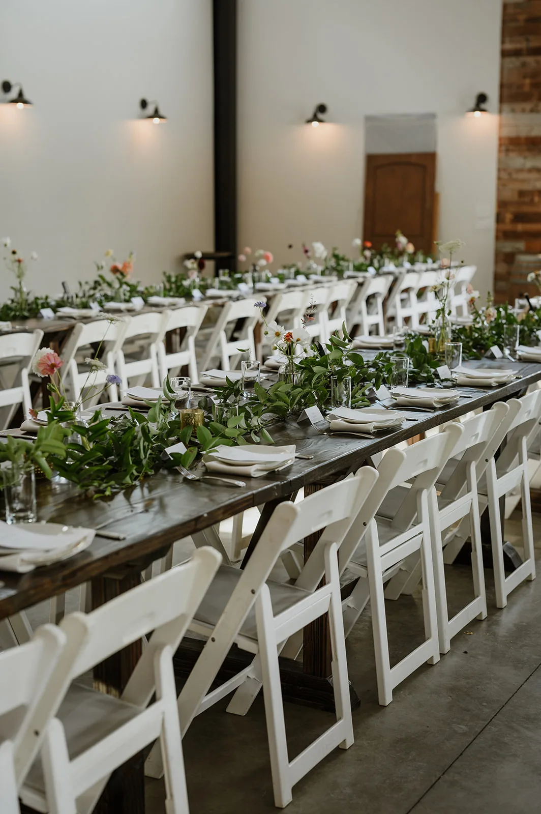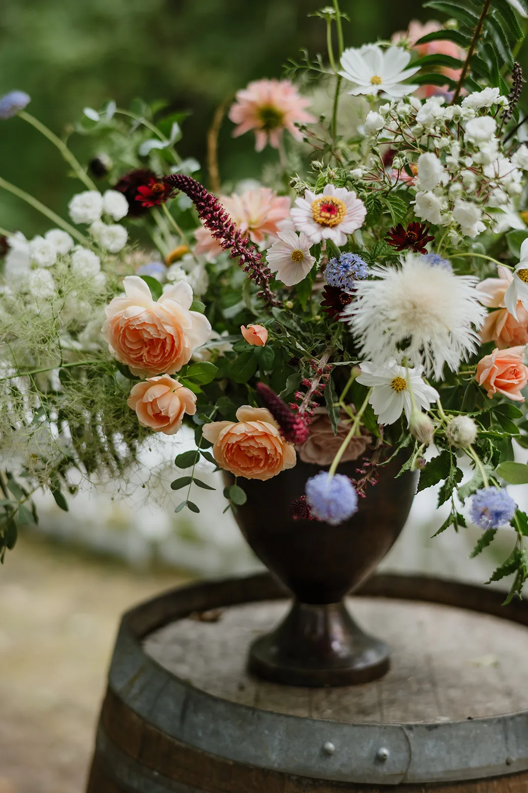 Following the ceremony, the celebration continued with a reception that was nothing short of beautiful. The floral arrangements were thoughtfully designed, perfectly complementing both the estate’s natural surroundings and the day’s overall aesthetic. Every detail — from tabletop styling to floral accents — was carefully selected to elevate the space while maintaining a connection to the organic setting.