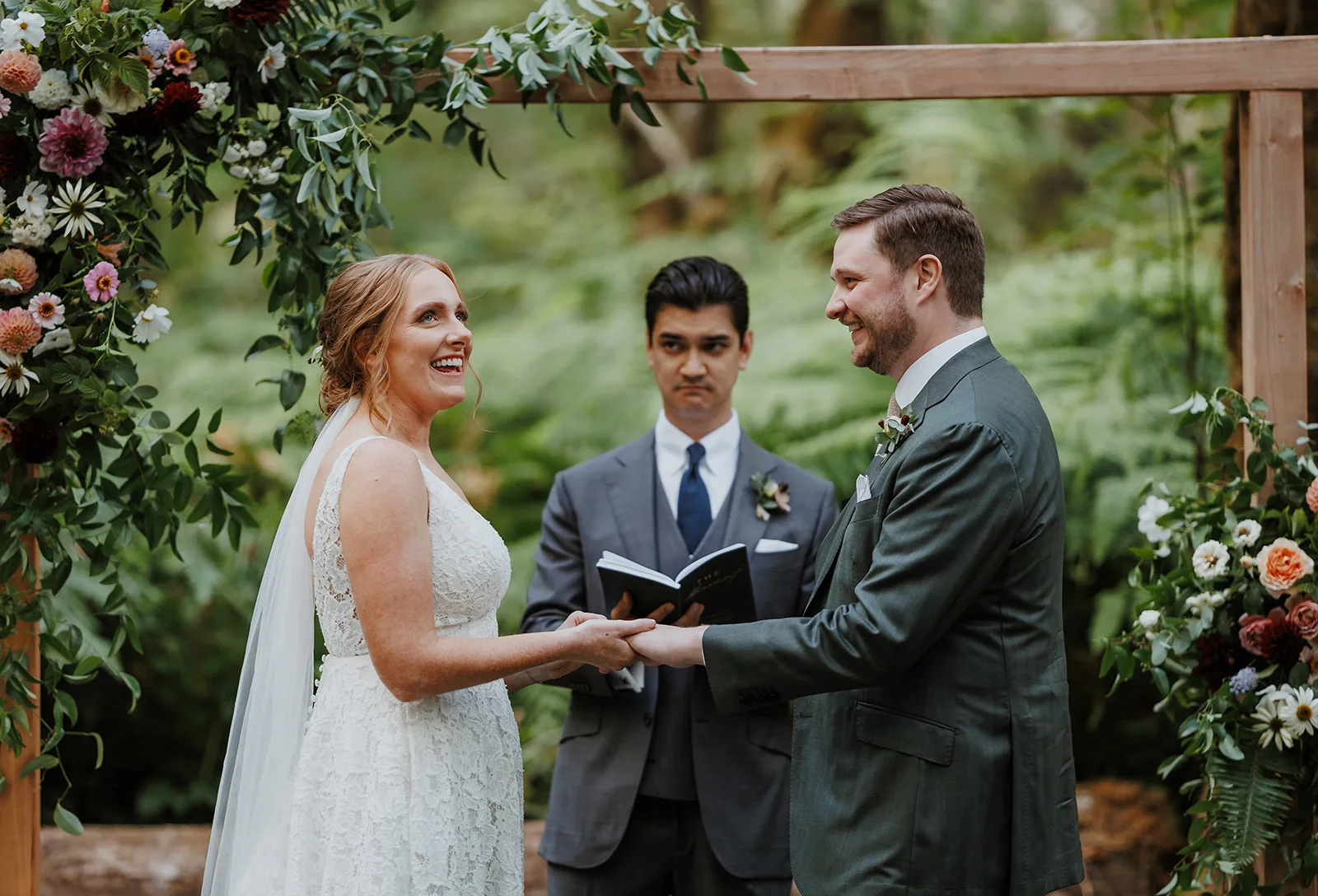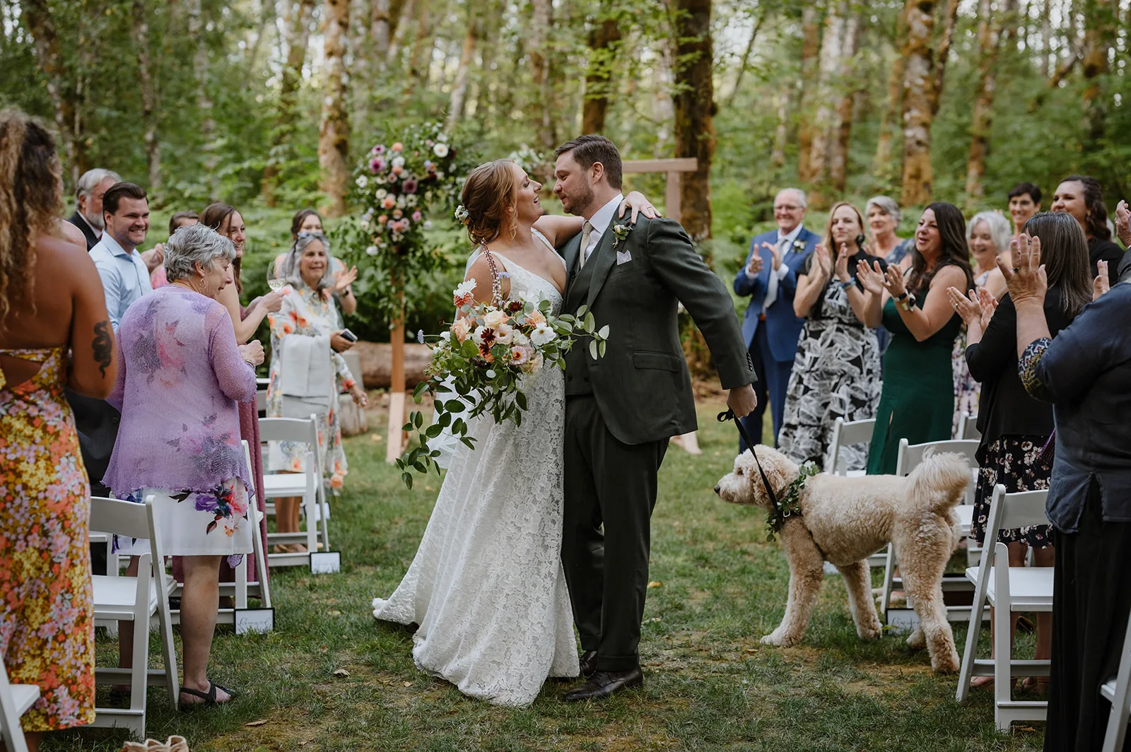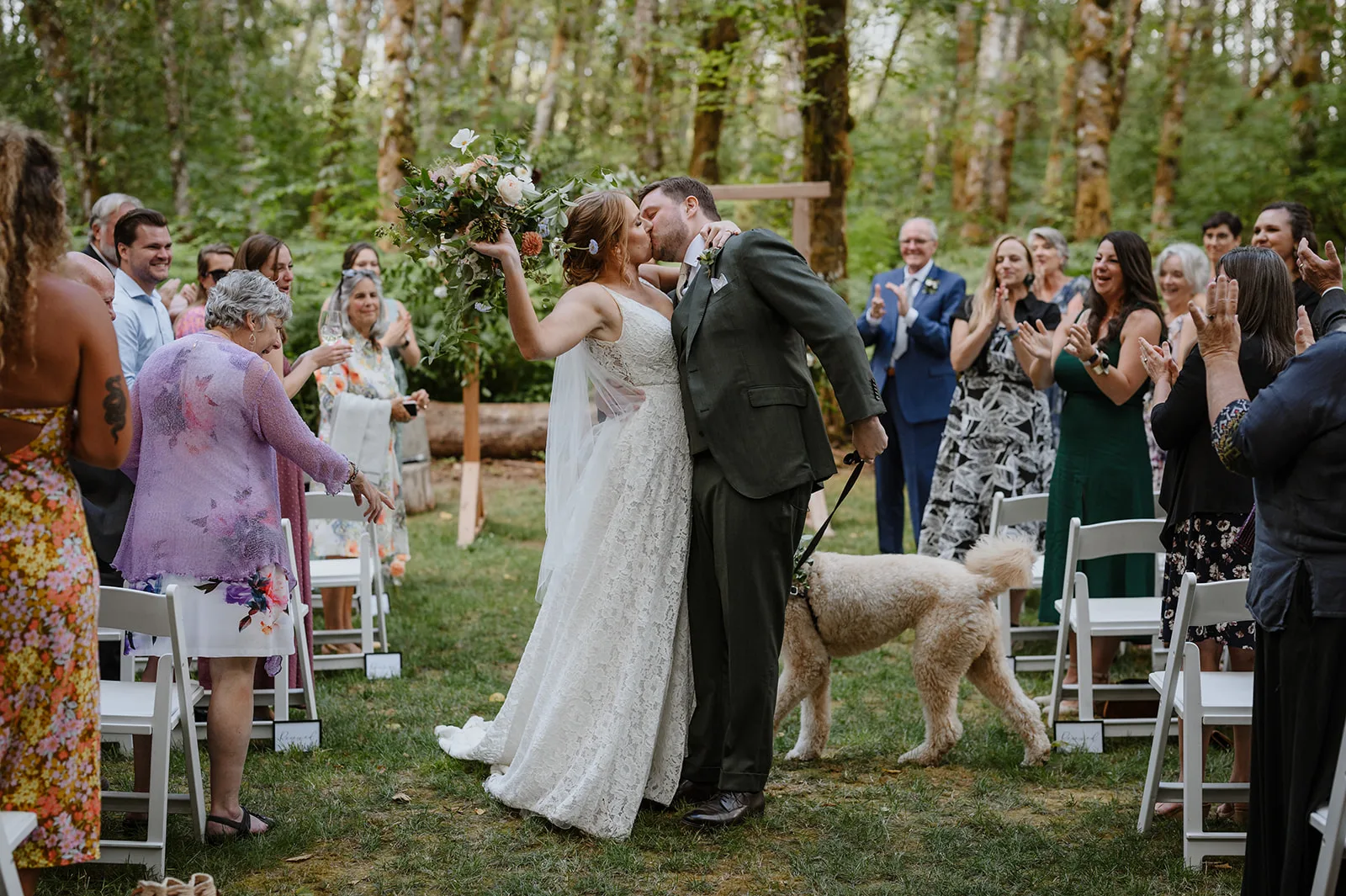 One of my favorite parts about capturing a wedding at Carson Creek Estate is the intimate, almost magical feel of the ceremony space. After cocktail hour, guests walked along a gently winding woodland path, enveloped by towering trees and lush greenery, toward the ceremony site. This forest hollow area is one of the venue’s most unique features, offering a natural and enchanting backdrop for exchanging vows.