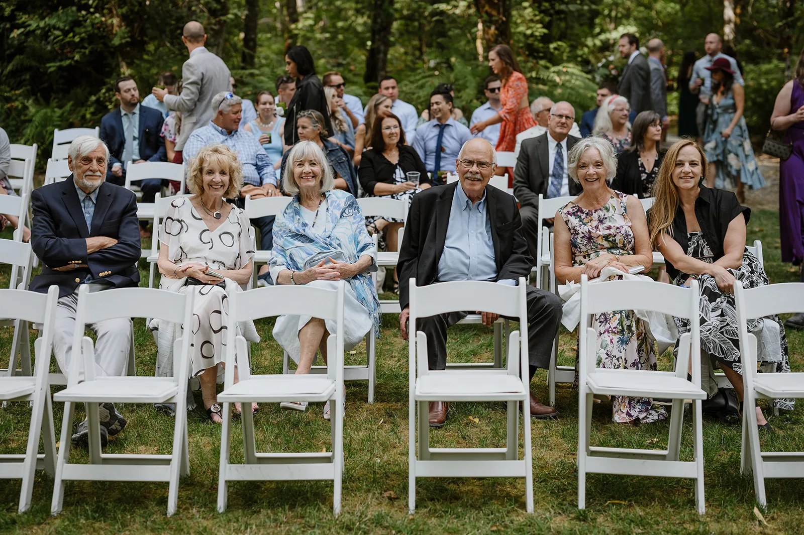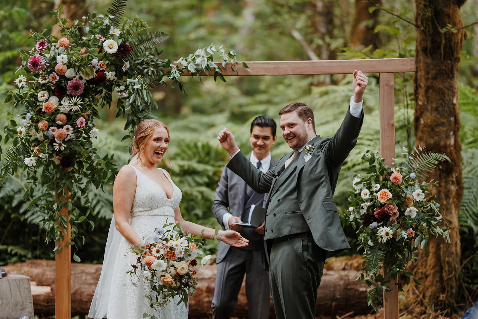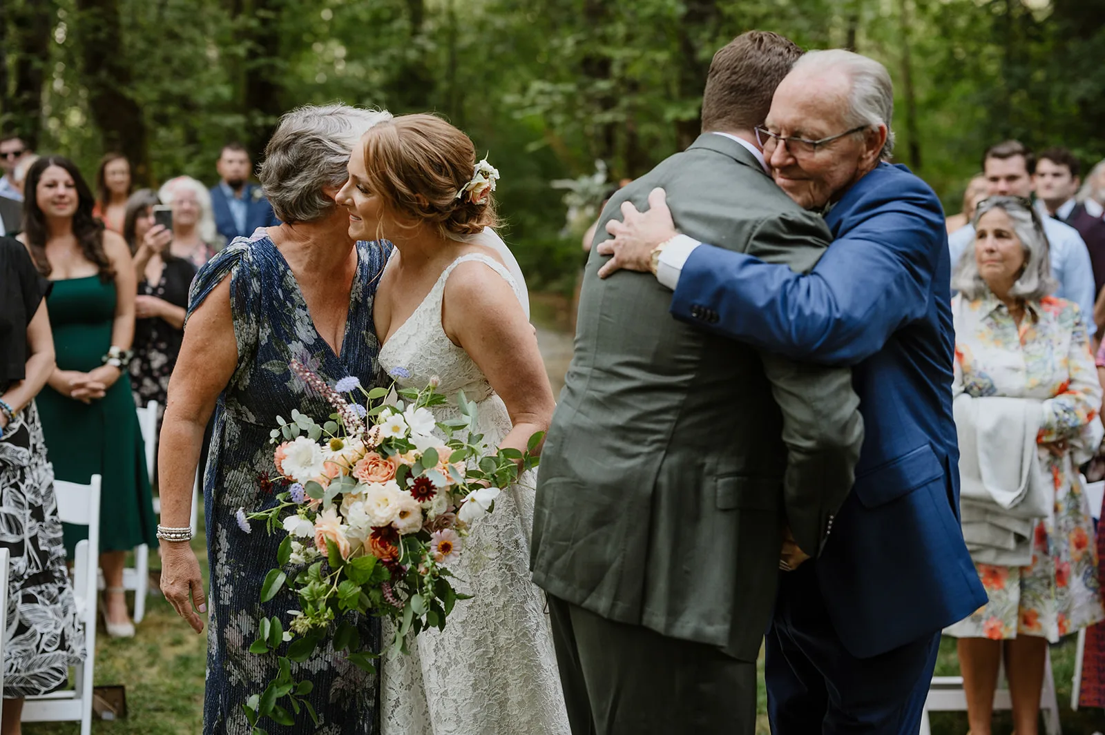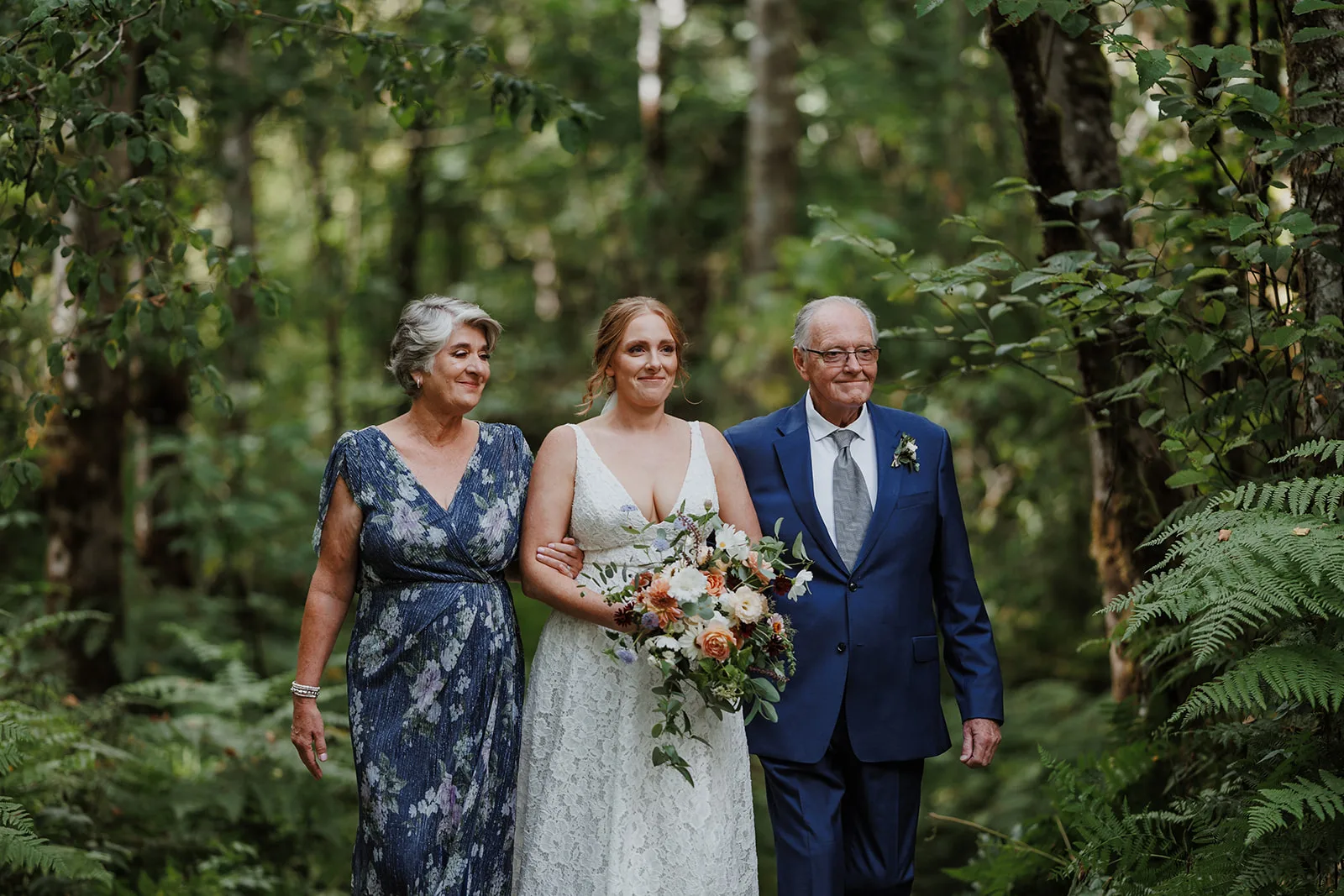 One of my favorite parts about capturing a wedding at Carson Creek Estate is the intimate, almost magical feel of the ceremony space. After cocktail hour, guests walked along a gently winding woodland path, enveloped by towering trees and lush greenery, toward the ceremony site. This forest hollow area is one of the venue’s most unique features, offering a natural and enchanting backdrop for exchanging vows.