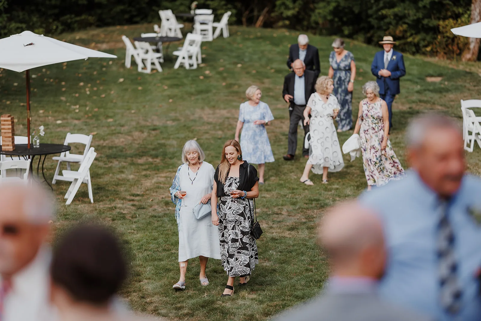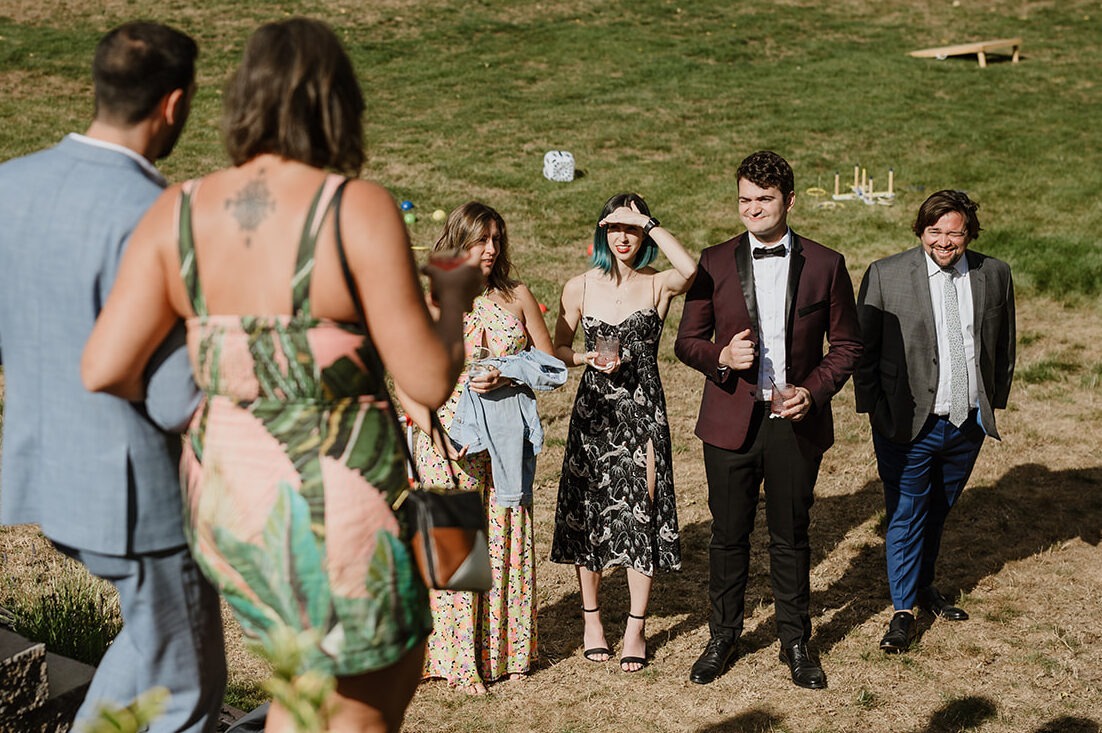 Once we returned to Carson Creek Estate, guests began arriving and stepping into the celebration with delight. Set on over 20 acres of forest, meadows, trails, and creeks in Bellingham, WA, Carson Creek Estate offers an incredible variety of ceremony and reception spaces that make every part of your day feel unique and immersive.