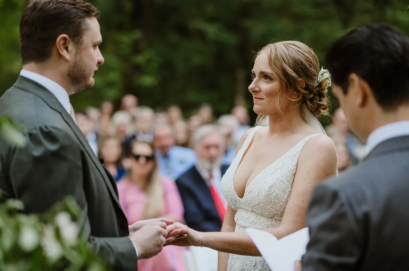As the couple stood beneath the canopy of trees, surrounded by friends and family, the atmosphere was thick with love and anticipation. Their promises to each other felt heartfelt and deeply personal, making for ceremony imagery that’s both emotional and timeless. It’s moments like these — the stolen glances, the gentle laughter, the tears of joy — that define not just a wedding, but the very essence of the commitment being celebrated.