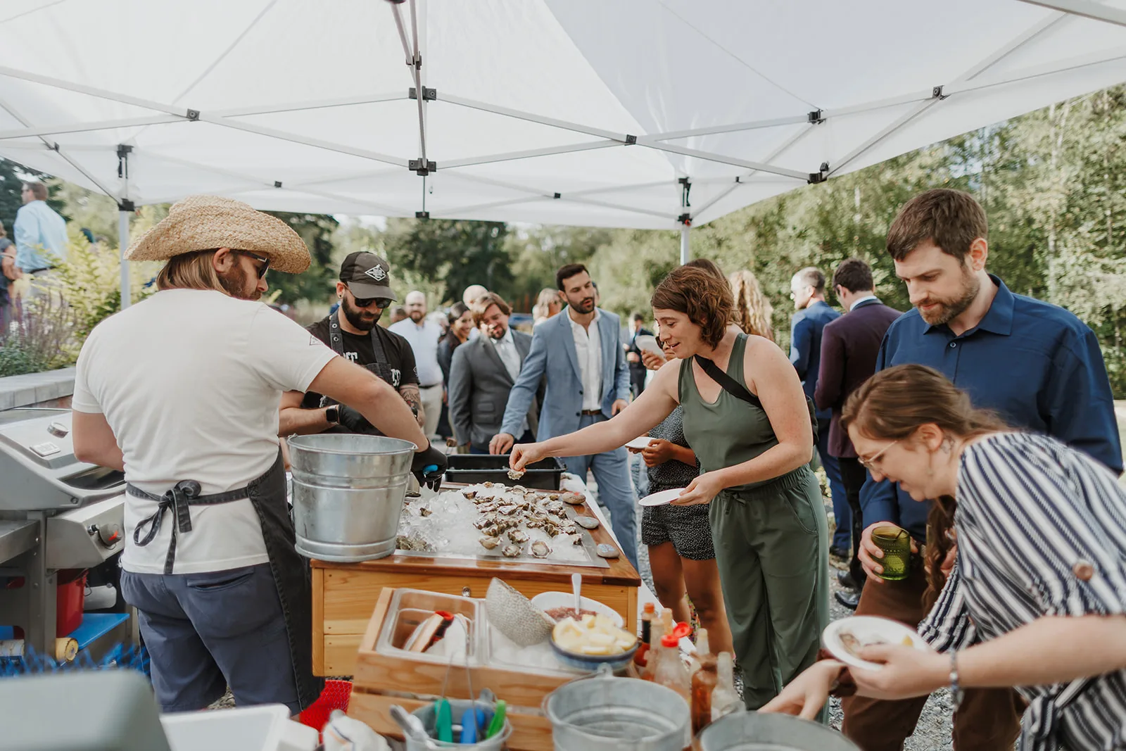 Guests were greeted with fresh oysters and beautifully curated hors d’oeuvres that immediately set an elegant and joyful tone. There was a buzz of excitement in the air as loved ones mingled, laughed, and savored the start of the celebration. The thoughtful planning ensured that every guest felt welcomed and at ease before the ceremony began.