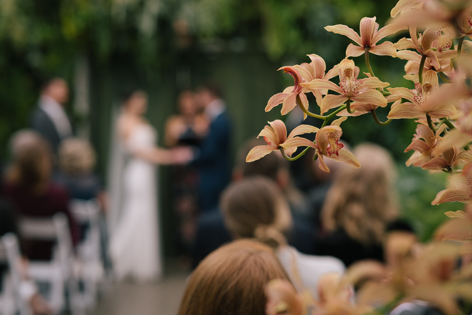 Before their ceremony, Taylor and Patrick arranged for a photography permit for their wedding at the WW Seymour Conservatory—a gorgeous location full of lush greenery and natural light. Typically, reserving a permit for a space like this means exclusive access for your photographer. However, on this day, the conservatory had allowed two other photographers to use the space simultaneously. One was even holding mini sessions, which meant kids running around and limited access to the best spots.