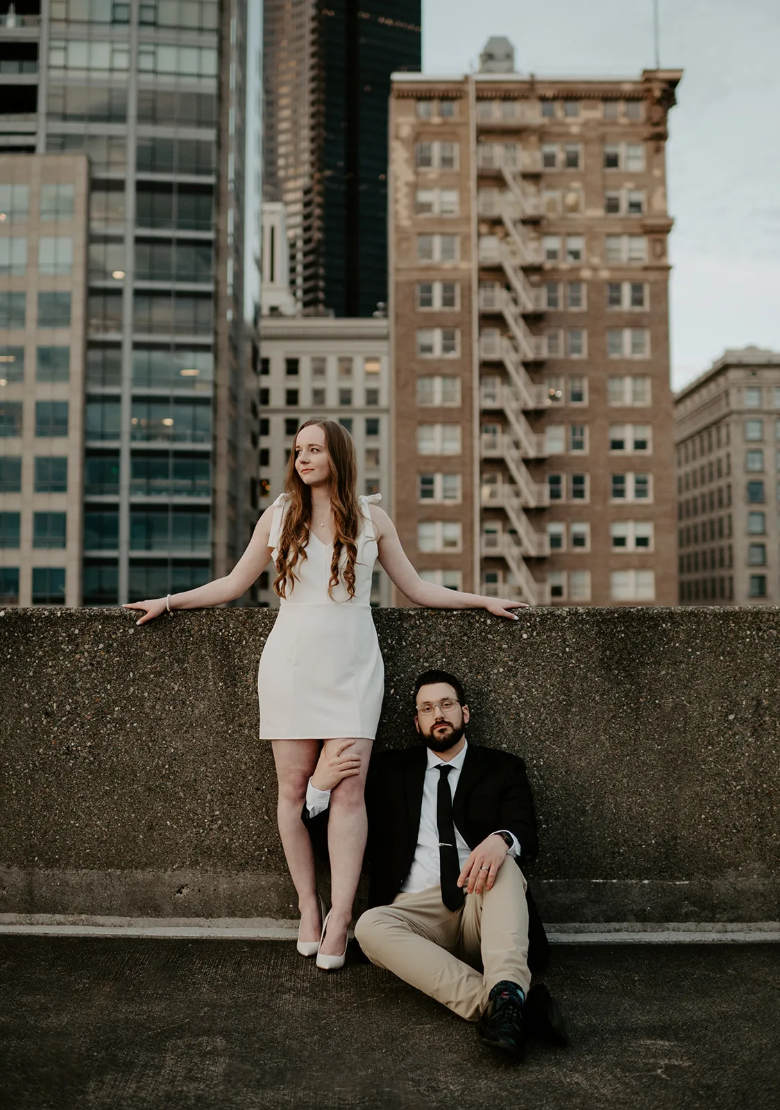Some engagement sessions feel effortlessly elevated from the very beginning — this Seattle rooftop engagement session was one of them. Designed with intention and guided by a refined creative vision, this Seattle rooftop engagement session blended modern sophistication with the quiet romance of the city.