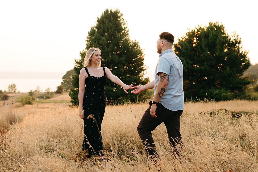 Even though fall in Washington is often cloudy, these conditions contribute a unique magic to the atmosphere. During this fall engagement session, I found myself contemplating the perfection of this setting. Like a dream, we were surrounded by golden, tall grass and bathed in sunlight.