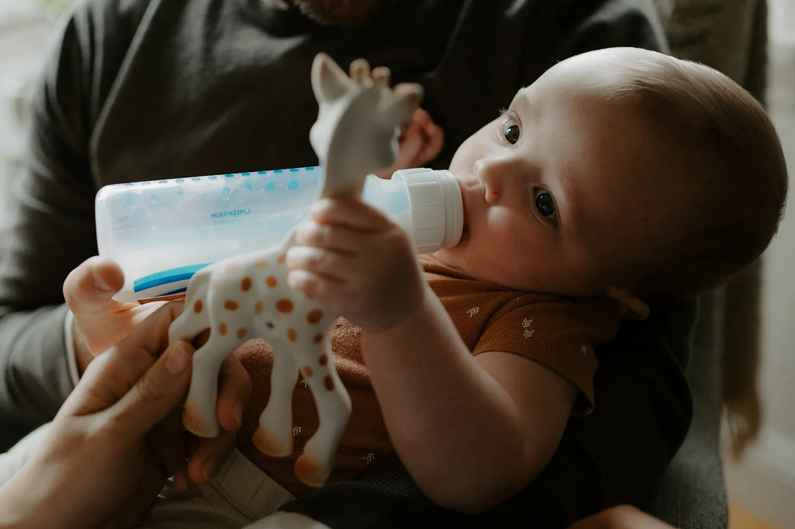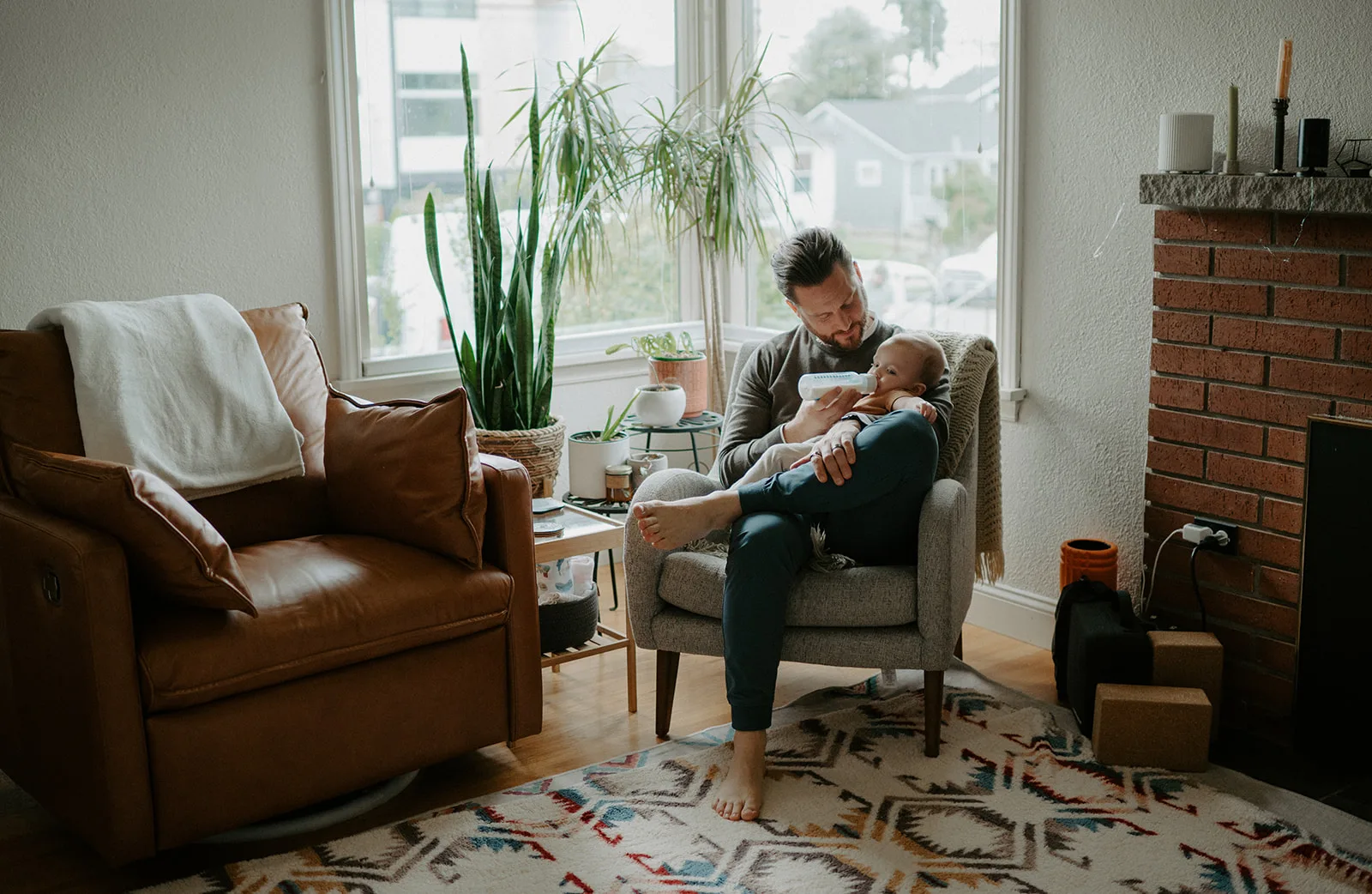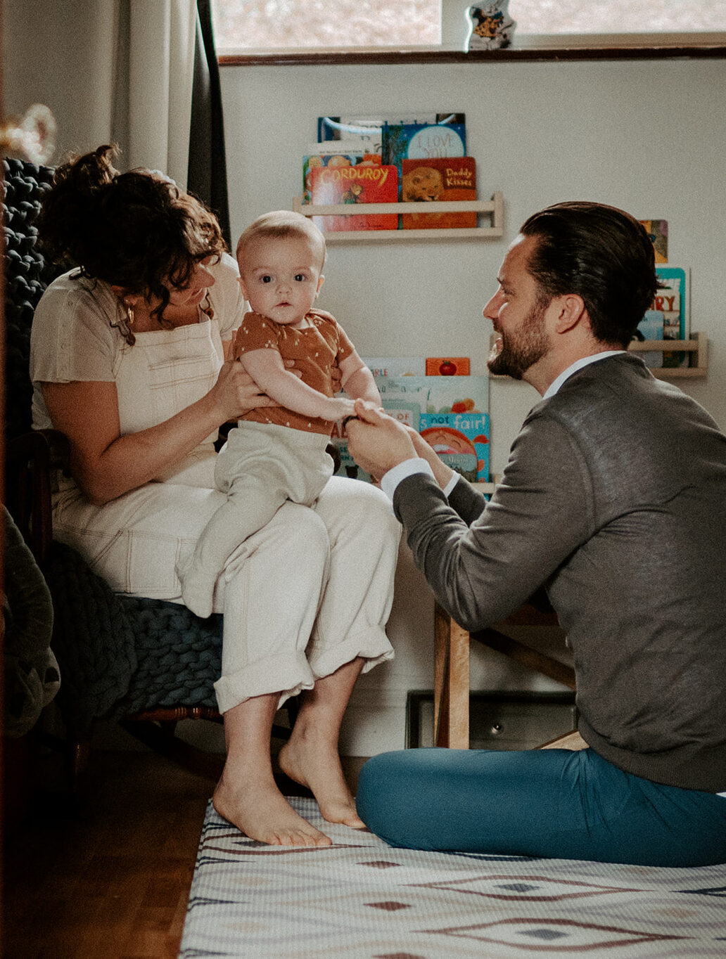 In-home lifestyle sessions have a unique charm. They allow families to be in their natural environment, bringing genuine emotions and interactions. Firstly, we started the session in the baby’s room, a beautifully decorated space that reflected the joy and excitement of new parents. Then, we moved to their cozy living room. The room was filled with warmth and love as J and M doted on their little one. Here, I captured tender moments of J feeding their baby and M sweetly sitting by.