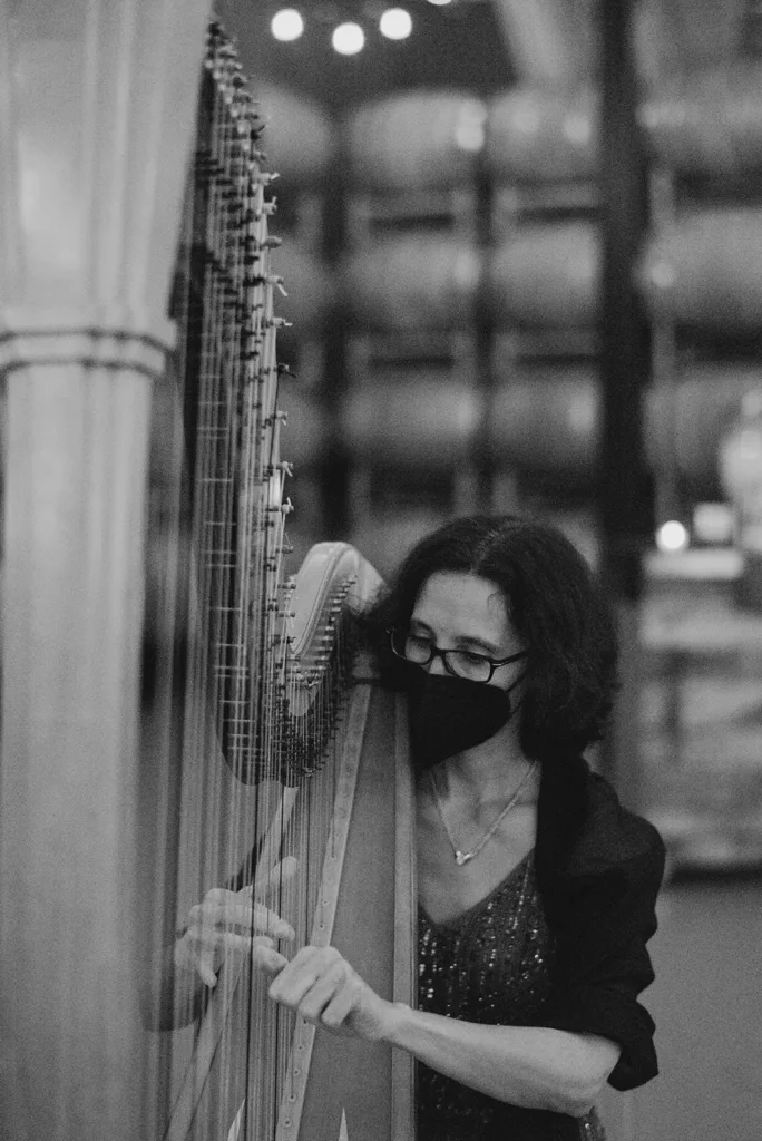 The bride’s mother played the harp as the couple walked down the aisle. This was a beautiful and ethereal addition to the occasion. Despite the lack of light, these photos turned out stunningly dark and moody. The moodiness perfectly captured the atmosphere of the day.
