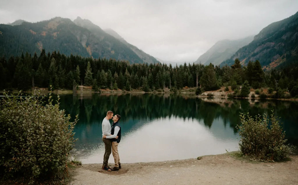 Gold Creek Pond, located in the beautiful Snoqualmie Pass in Washington, is a breathtaking location, subsequently perfect for an engagement photoshoot. The stunning scenery, surrounded by lush forests and a serene pond, makes for a gorgeous romantic backdrop. This Gold Creek Pond Engagement session certainly was one to remember!