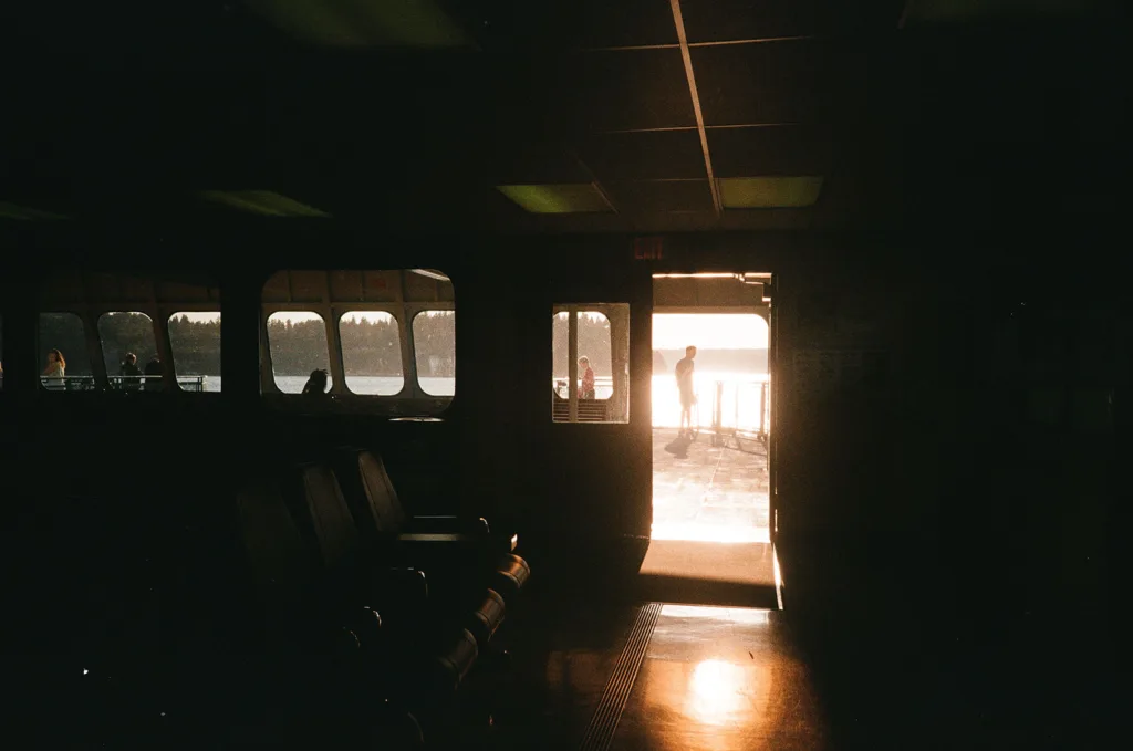 I’m a wedding and portrait photographer based in Seattle who loves shooting the occasional roll of film, and one of my favorite places to shoot is on the Washington Ferry. There’s something about the movement of the ferry and the waves that make for a romantic setting. Plus, the light is always beautiful, whether it’s the golden hour sunsets or the soft light of early morning. Here’s my latest collection of film photographs from traveling on the Washington Ferry!