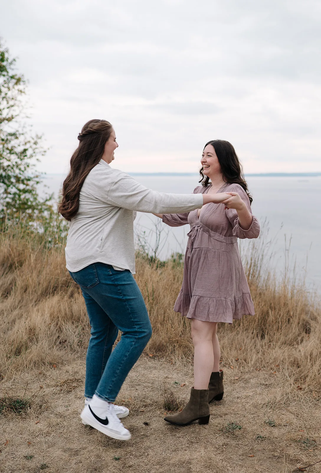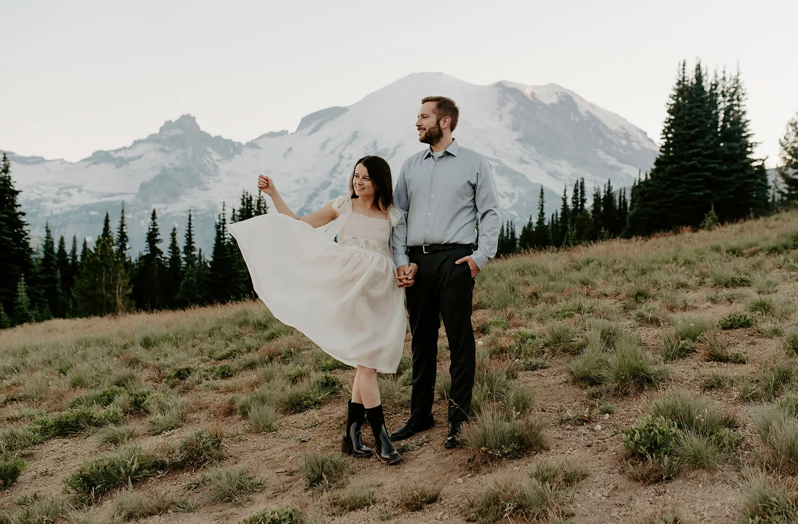 Your outfit should complement your surroundings rather than clash with them. A flowy dress or linen shirt works beautifully for a beach session, while cozy layers and earthy tones fit perfectly for a mountain or forest setting. If your engagement photos are in an urban setting, sleek neutrals or structured outfits can add a modern touch. And, of course, always consider the weather—no one wants to freeze in a sleeveless dress in the middle of winter! Need help picking a location? Check out my guide to the best Seattle engagement locations.